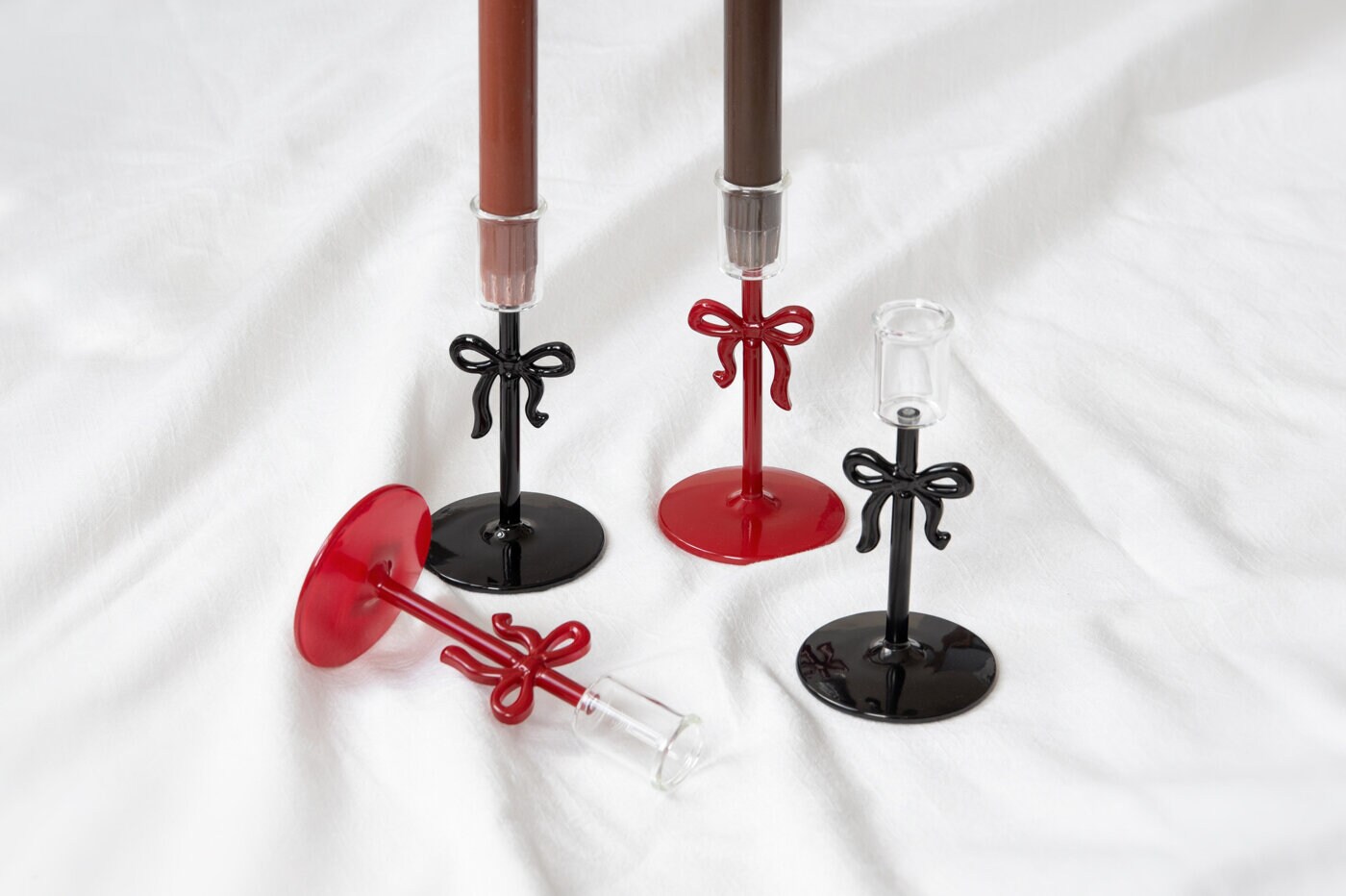 Champagneglass og lysestakar med en vri. Velg mellom fargene svart og burgunder.