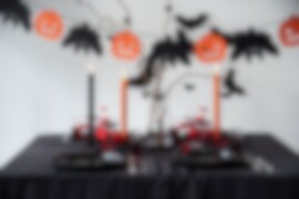 - Svart och orange är de klassiska halloweenfärgerna och fungerar alltid. Du kan exempelvis använda svart porslin eller bordstabletter som bas och komplettera med orange detaljer, som pumpor eller tända ljus.