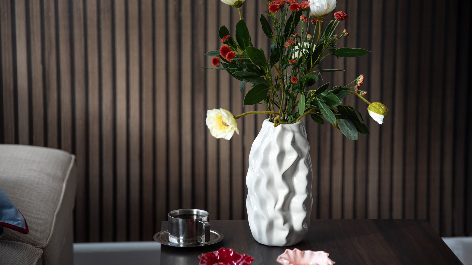 På inredningssidan fortsätter trenden med mjuka, organiska former och taktila material. Vaser i glossig keramik, naturinspirerat glas och trendigt burgundy skapar variation och fungerar lika bra ensamma som i grupp.