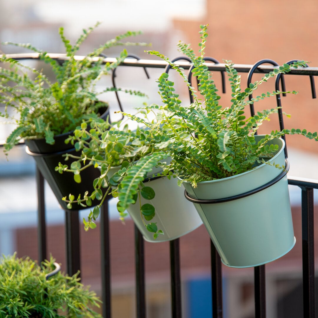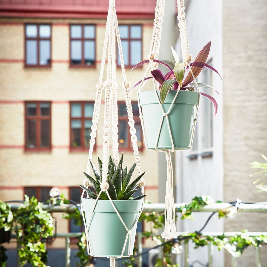 En blomtrappakan också hjälpa till att ge höjd. En sådan bygger du enkelt själv, eller köper från exempelvis en blomsterhandlare. Där kan du variera krukor och växter av olika slag, såsom hängväxter, odlingar och blommor. Ett annat sätt att utnyttja hela balkongen är att hänga växter i amplar om möjligheten finns.