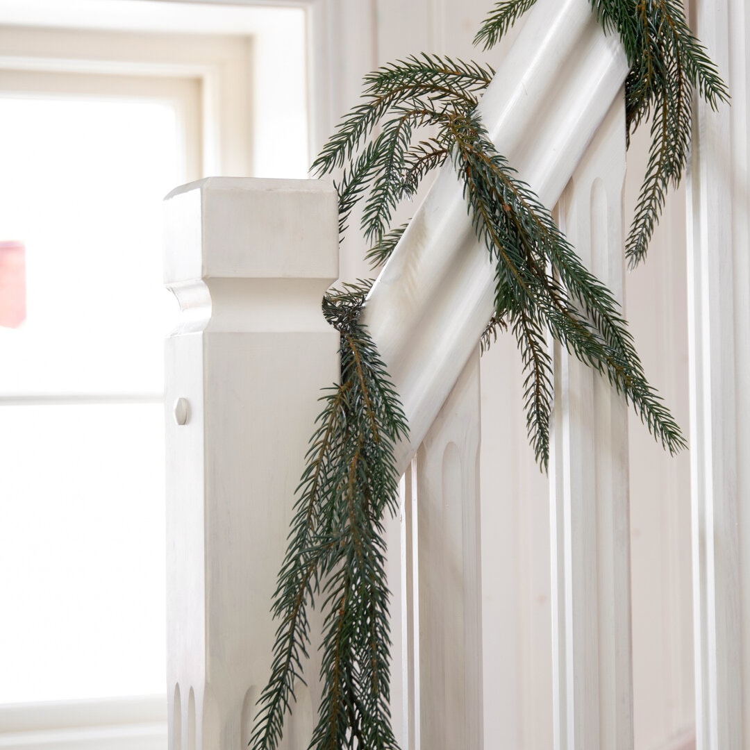 Ett vintertips är att dekorera balkongen med granris. Ställ några kvistar i en vas eller vira riset runt balkongräcket.