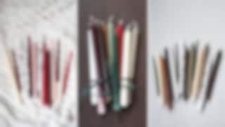 Smalt ljus, 10 för 79 kr. Rustikljus Rosett, 4 för 116 kr. Antikljus Lackat, 4 för 119 kr. Presentband Raffia, 29 kr. Rustikljus Julgran, 4 för 116 kr.
