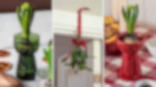 De charmiga glasburkarnaStuga och Luva, i form av ett hus respektive en tomteluva, kan användas som dekoration runtom i hemmet och som förvaring för småsaker. Konstväxter som Mistel, Hyacint och Tall ger dig möjligheten att addera grönska utöver julgranen, helt utan gröna fingrar. Häng upp misteln över dörren, lägg hyacintlöken i vaserna Hyacint eller Vira och placera tallkvisten i den böljande vita vasen Dress. Pappersblommorna Amaryllis, i både vitt och rött, gör sig fint i en ljuskrona, på julklappen eller i julgranen.