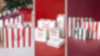 Ett av årets mest trendiga inslagningsspår är randiga Linjär, som syns både på presentpåsar och presentpapper i kulörerna burgundy, rött och grönt. Tillsammans med Rutan skapar Linjär en modern grafisk känsla som känns både trendig och tidlös. De minimalistiska linjerna blir en perfekt bas att kombinera med säsongens rosetter, skimrande silverband och andra dekorativa detaljer.