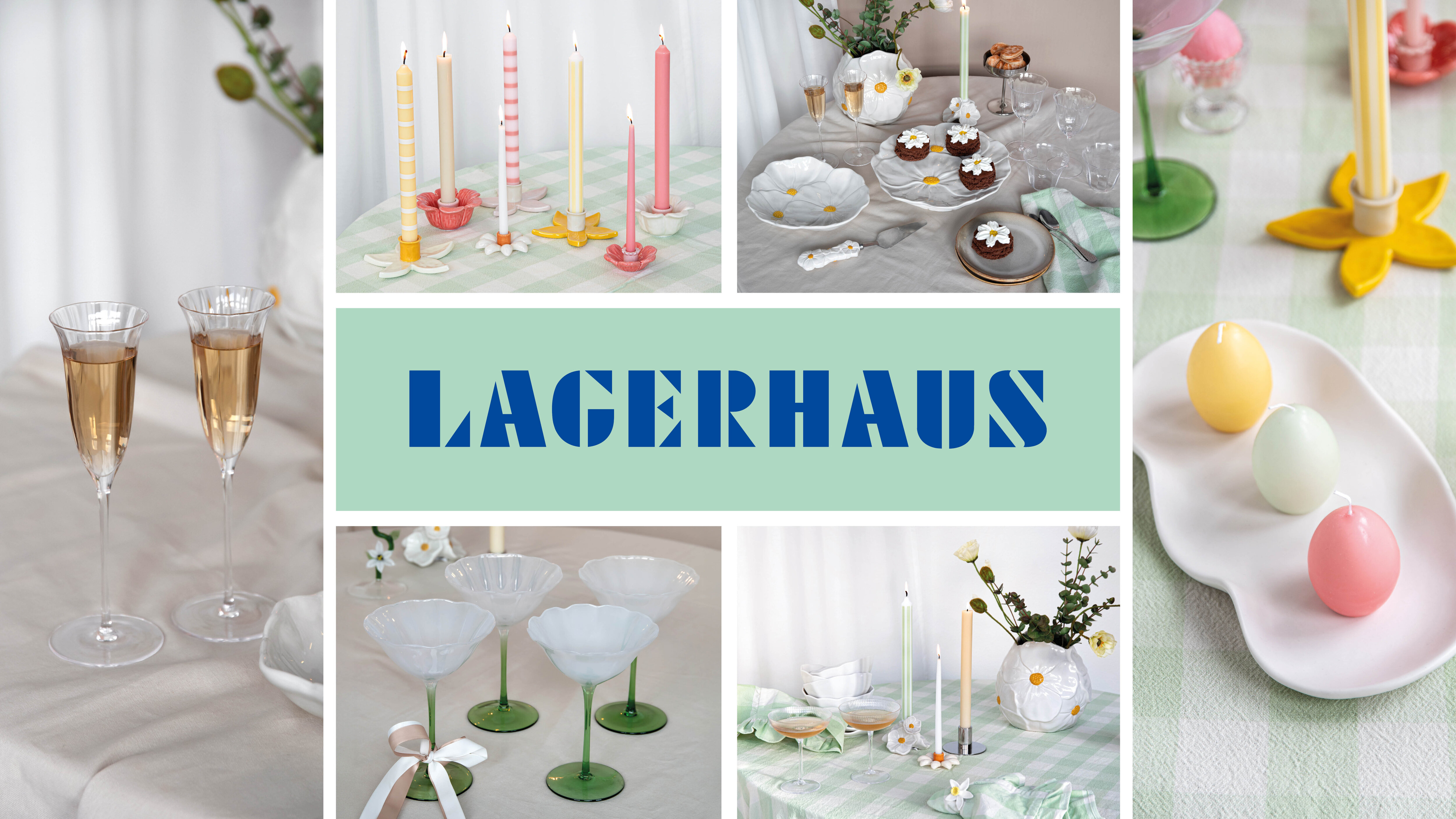 Lagerhaus delar upp säsongen i två tydliga faser. Den första präglas av vårens mjukare uttryck: blommande former, subtila färgskiftningar och fokus på dukning. Därefter tar påsken fullt utrymme, med ett mer lekfullt men fortsatt genomarbetat formspråk där ljus, pynt och presentidéer samspelar.