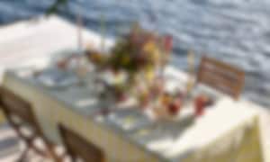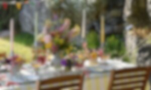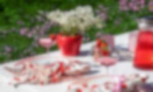 Om du har en utomhusmiddag är omgivningen minst lika viktigt som dukningen. Duka under ett träd, använd en pergola eller skapa skugga med ett parasoll. Lägg filtar på gräset, häng upp vimplar eller fäst ballonger i buskar – sommarens grönska är den bästa dekoren!
