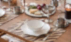 - Mixa material för en varm känsla. Kombinera keramik med glas, trä med metall – kontraster skapar liv. Djurmönstrade bordstabletter eller dekorationer gör dukningen mer personlig och trendig.